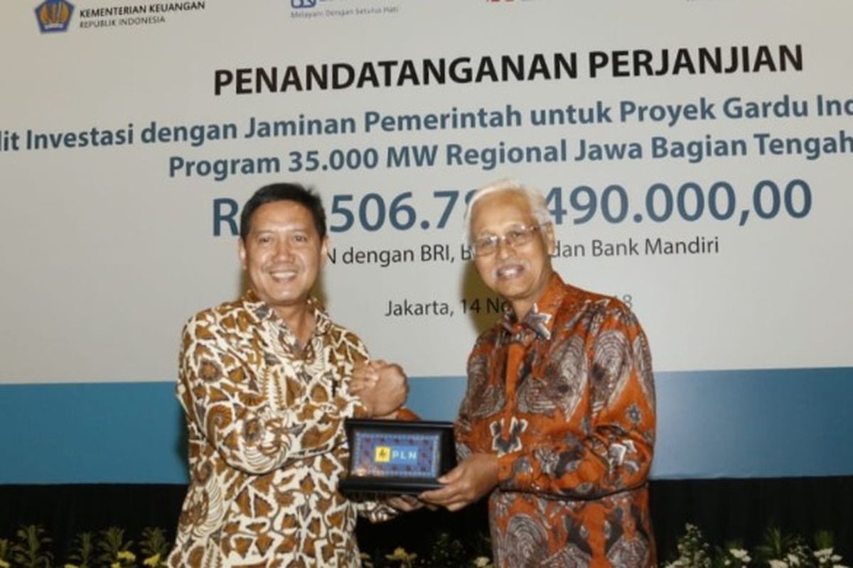 JAKARTA – Bank BRI terus mendukung pembangunan proyek infrastruktur kelistrikan nasional sebesar 35.000 megawatt (MW) yang tengah dikebut oleh pemerintah. Salah satunya dengan melakukan penandatanganan perjanjian kredit investasi dengan jaminan pemerintah, untuk Proyek Gardu Induk dan Transmisi Program 35.000 MW Regional Jawa bagian Tengah, di Jakarta (14/11).