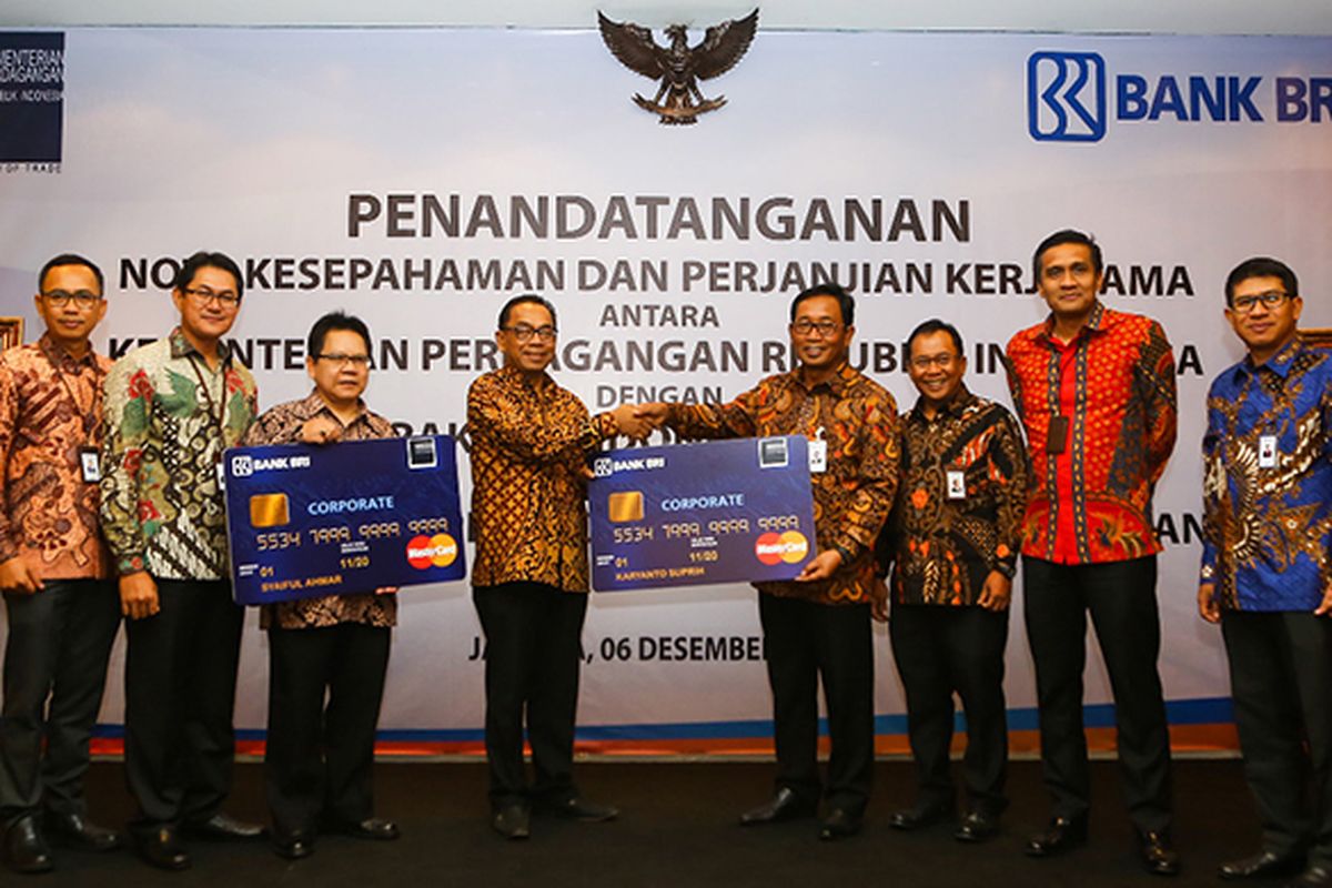 PT Bank Rakyat Indonesia (Persero) Tbk (Bank BRI) terus berkomitmen dalam memfasilitasi kemudahan transaksi perbankan di lingkup kementerian maupun lembaga. Baru-baru ini, Bank BRI resmi bekerja sama dengan Kementerian Perdagangan (Kemendag) RI melalui penandatanganan Nota Kesepahaman atau Memorandum of Understanding (MoU) tentang Penyediaan dan Pemanfaatan Jasa Layanan Perbankan. Penandatanganan ini dilakukan oleh Direktur Hubungan Kelembagaan Bank BRI Sis Apik Wijayanto bersama dengan Sekretaris Jenderal Kementerian Perdagangan RI Karyanto Suprih dan dilakukan di Gedung Auditorium Kementerian Perdagangan RI, Jakarta, Kamis (6/12).