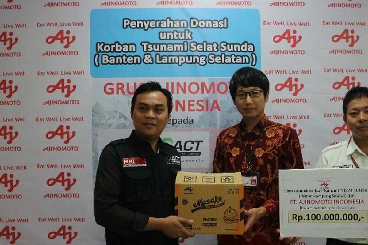 Sebagai bentuk kepedulian sosial terhadap masyarakat yang menjadi korban bencana tsunami yang melanda kawasan pesisir Banten dan Lampung, PT Ajinomoto Indonesia memberikan bantuan senilai Rp 100 juta berupa produk bumbu masak dan mie instan di Pasar Labuan dan Pasar Sumur.