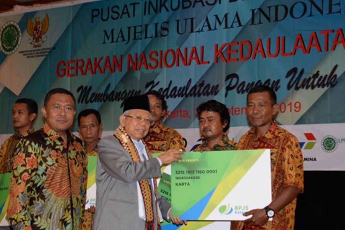Pada kesempatan tersebut, dilakukan juga penyerahan kartu peserta BPJS Ketenagakerjaan secara simbolis kepada lima orang petani yang diserahkan langsung oleh Eko Darwanto didampingi Direktur PINBAS M Azrul Tanjung, serta disaksikan secara langsung oleh Ma’ruf Amin.