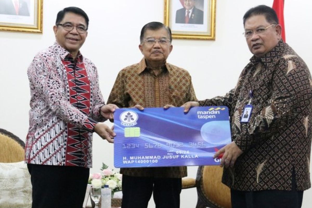 Sebagai bentuk nyata dari komitmen layanan proaktif yang digaungkan, Direktur Utama PT Taspen Iqbal Latanro bersama Direktur Utama PT Bank Mandiri Taspen (Bank Mantap) Josephus K. Triprakoso mengunjungi Wakil Presiden Jusuf Kalla pada Senin (14/10/2019) di kantornya. Kunjungan Dirut Bank Mantap ini dilakukan dalam rangka penyerahan uang pensiun dan tabungan hari tua (THT) langsung kepada Jusuf Kalla.