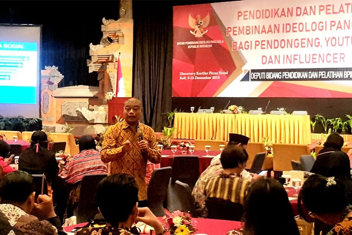 Salah satu usaha ini dilakukan oleh Deputi Bidang Pendidikan dan Pelatihan BPIP dengan menggelar acara Pendidikan dan Pelatihan Pembinaan Ideologi Pancasila Bagi Pendongeng, Youtuber, dan Influencer. Acara ini digelar mulai tanggal 9-13 Desember 2019 di Kartika Plaza Hotel, Bali dan dihadiri oleh lebih dari 120 peserta.