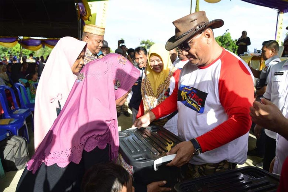 Rombongan Jelajah Wisata Sulawesi 2020, Rabu (26/2/2020) menggelar Bakti Sosial NKRI Peduli di sekitar Bundaran Patung BJ Habibie, Kecamatan Isimu, Provinsi Gorontalo. Sebanyak 1.500 paket sembako bersubsidi yang disediakan pada bakti sosial tersebut.