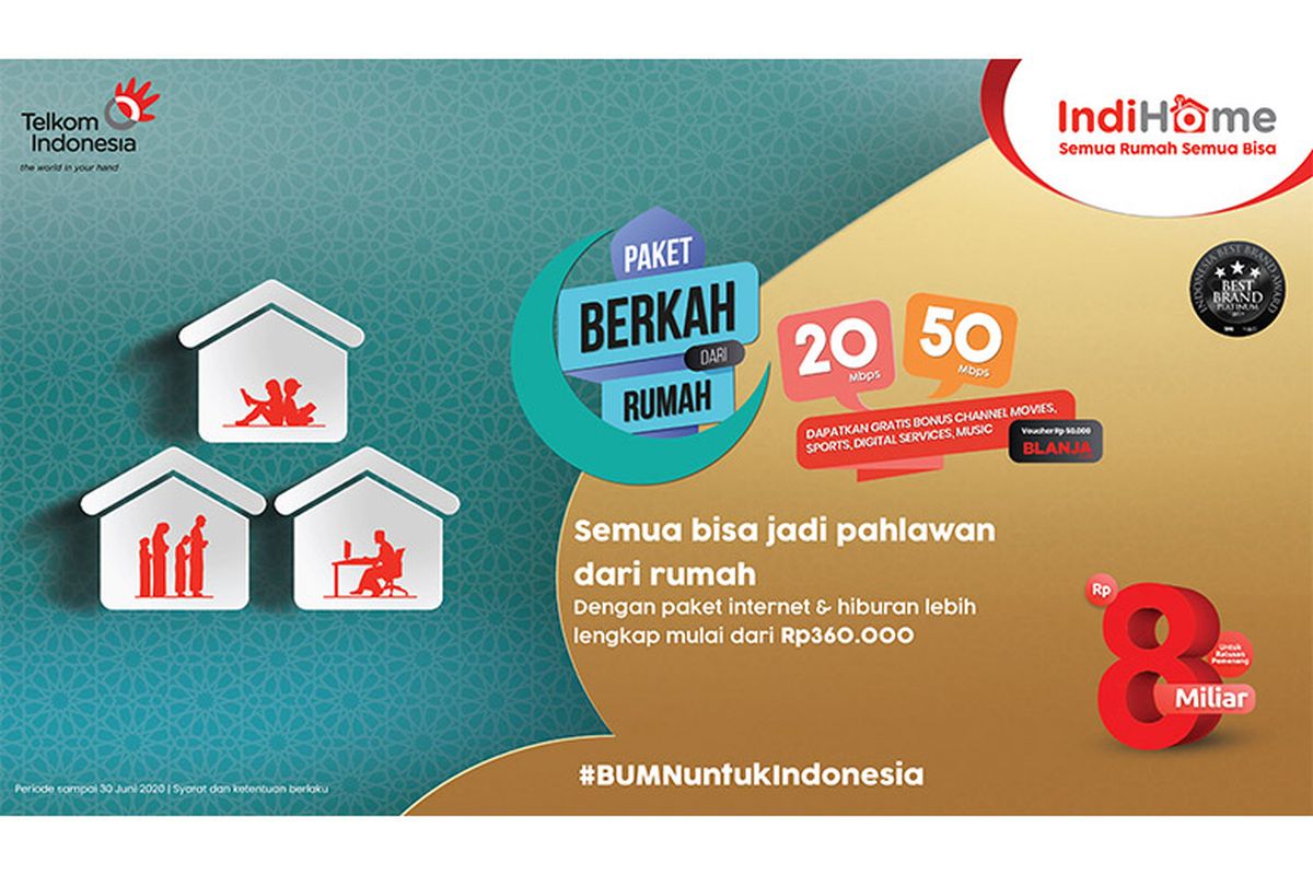 Indihome mendukung pelaksanaan ibadah, belajar, bekerja serta bersosialisasi dari rumah melalui Paket Berkah Dari Rumah.