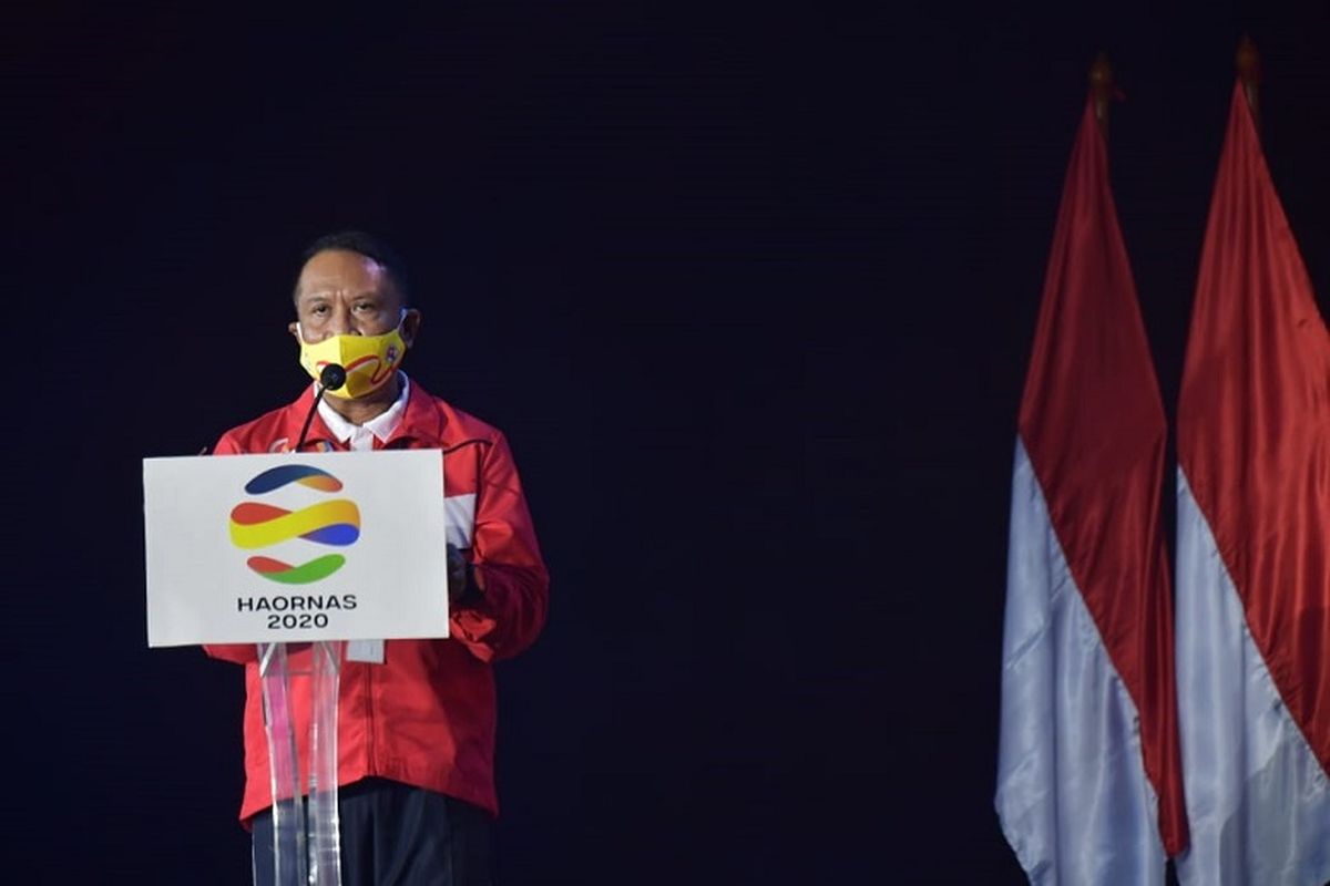 Pada Haornas XXXVII pemerintah memberikan penghargaan Satya Lencana Dharma Olahraga untuk 34 atlet dan pelatih olahraga berprestasi (Dok. Kemenpora)“Kami menyadari bahwa saat ini kita sedang berada dalam suasana krisis. Hal ini menjadi tantangan