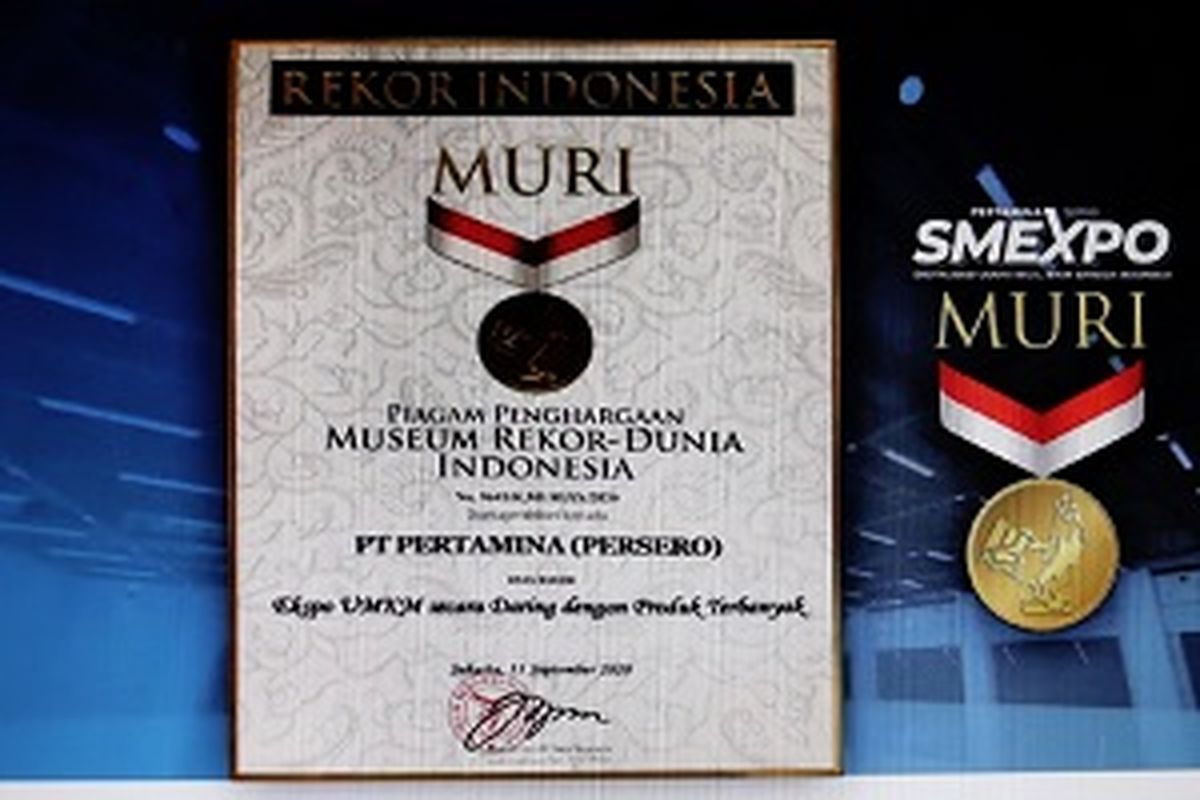 KOMPAS.com – Pertamina berhasil meraih penghargaan Museum Rekor-Dunia Indonesia (MURI) sebagai Expo Usaha Mikro Kecil Menengah (UMKM) dengan produk terbanyak.
