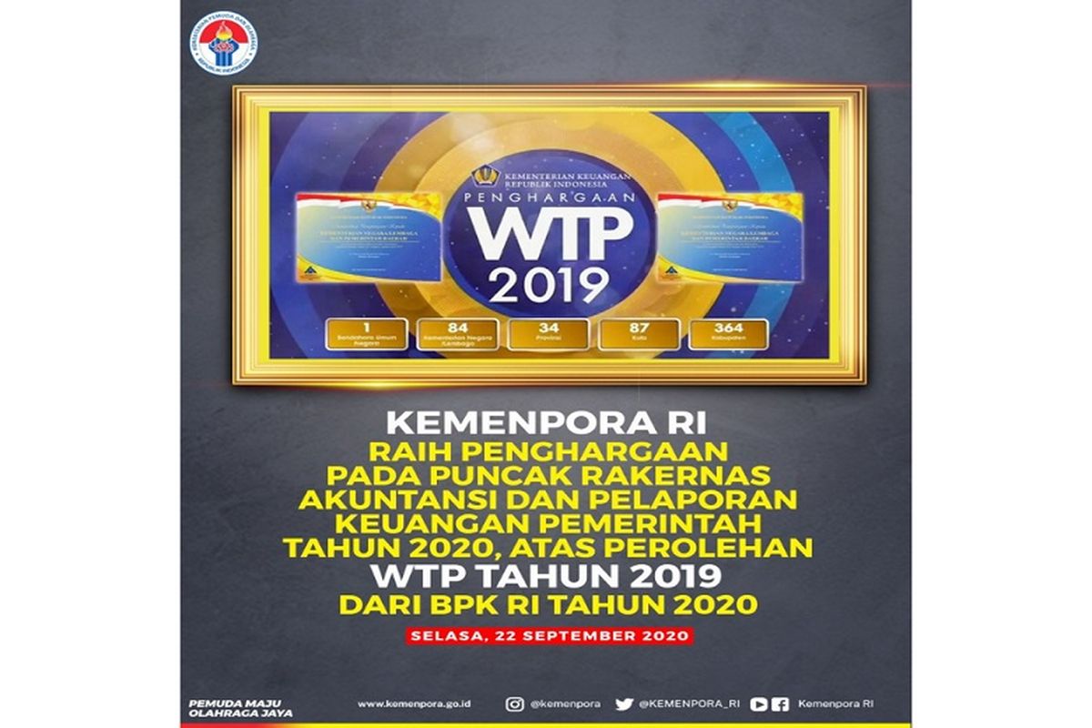 Adapun Kemenpora mendapatkan penghargaan di kategori ketiga karena berhasil mendapatkan WTP dari BPK untuk laporan keuangan tahun anggaran 2019.