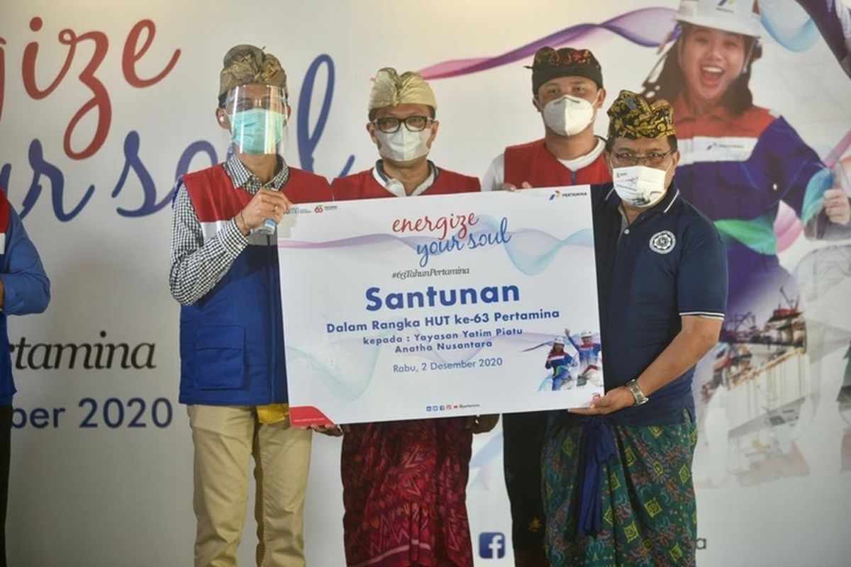 Kompas.com – Jelang HUT ke 63, Pertamina berikan santunan dengan total Rp 3,5 miliar di berbagai panti serta Yayasan di seputar wilayah operasi Pertamina. Kegiatan yang dihadiri oleh jajaran direksi dan komisaris PT Pertamina (Persero) ini dilakukan secara virtual bersama bersama anak-anak panti asuhan, santri pondok pesantren, penyandang disabilitas, hingga panti jompo, pada acara Energize Your Soul, Rabu, 2 Desember 2020.