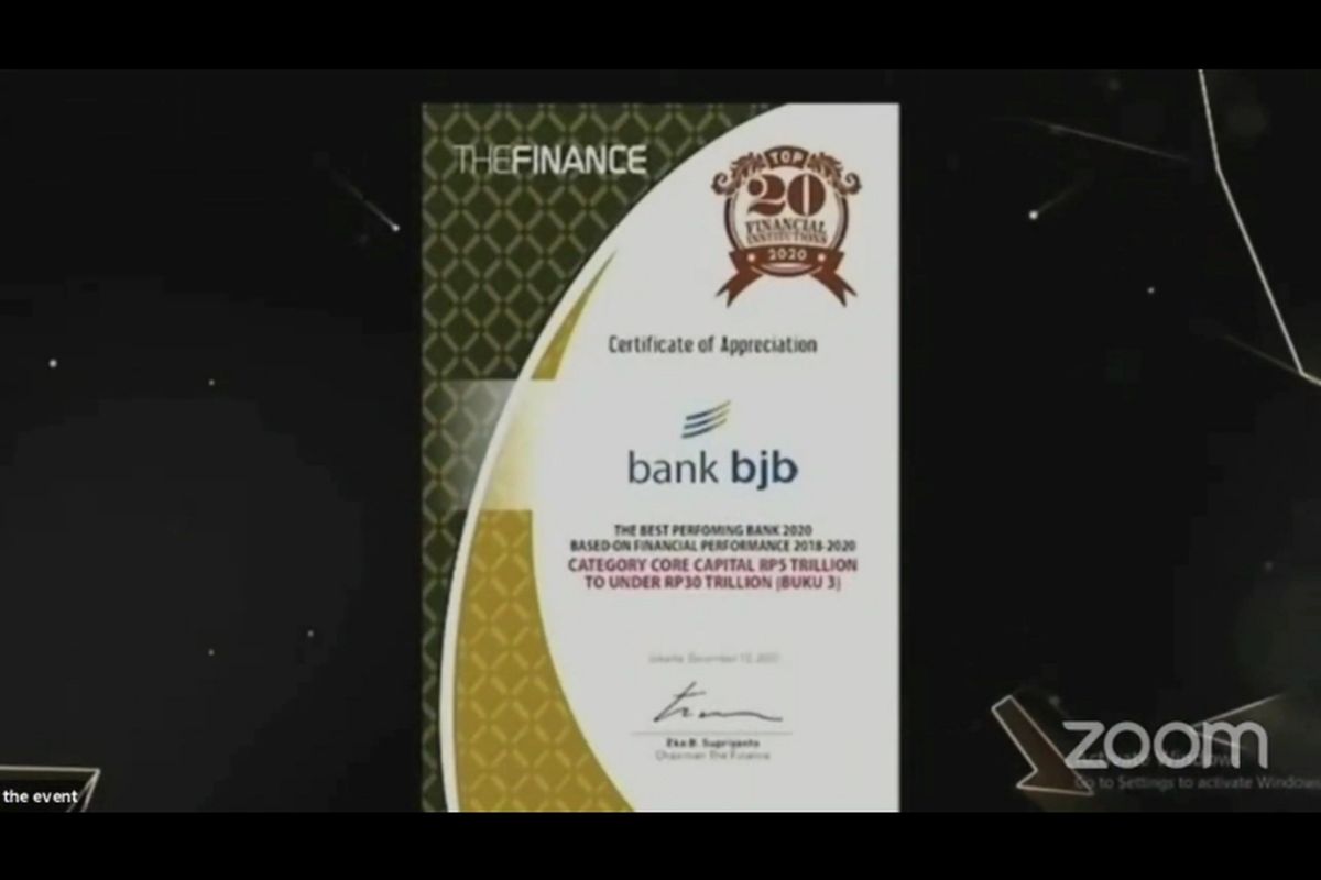 Atas kinerja positif tersebut, bank bjb berhasil masuk ke dalam jajaran perusahaan keuangan elit dengan meraih penghargaan Top Financial Institution 2020 dari majalah The Finance. Penghargaan ini diserahkan secara virtual pada Kamis (10/12/2020).