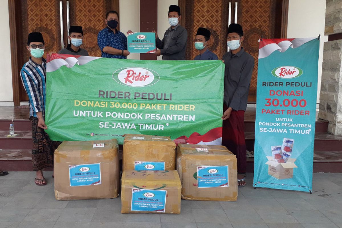 Adapun bentuk bantuan yang diberikan berupa masker untuk masyarakat umum dan donasi 100.000 paket produk Rider ke pondok-pondok pesantren di wilayah Pulau Jawa*. Paket ini terdiri dari pakaian dalam dan masker.