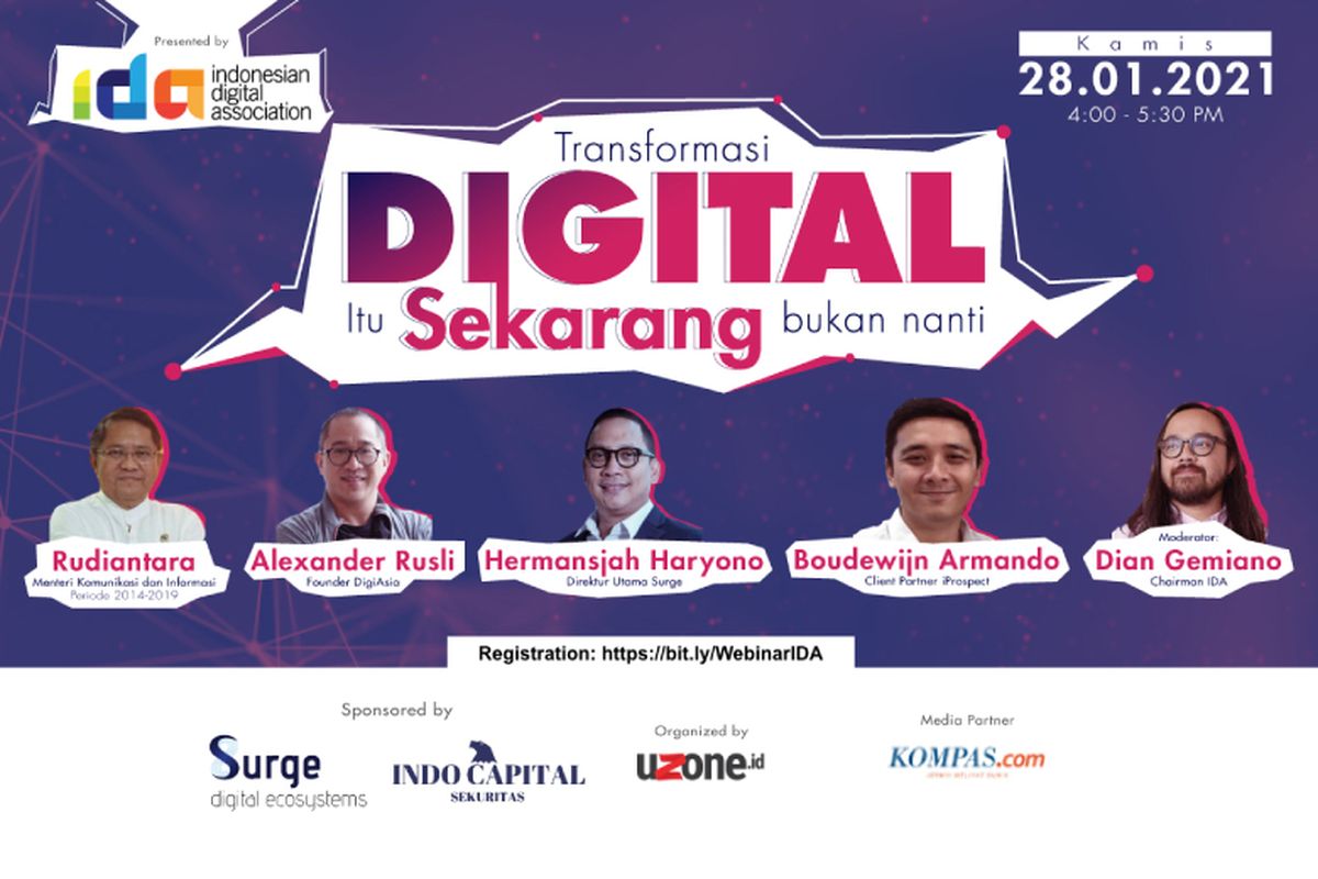 Komitmen itu ditunjukkan IDA lewat penyelenggaraan web seminar (webinar) bertema “Transformasi Digital Itu Sekarang Bukan Nanti” yang akan diselenggarakan Kamis (28/1/2021) pukul 16.00-17.30 WB.