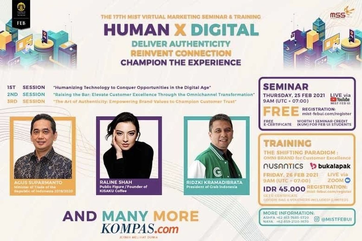 KOMPAS.com - Management Student Society Fakultas Ekonomi dan Bisnis Universitas Indonesia (MSS FEB UI) menyelenggarakan Marketing Insight, Seminar and Training (MIST) secara daring pada Kamis (25/2/2021).