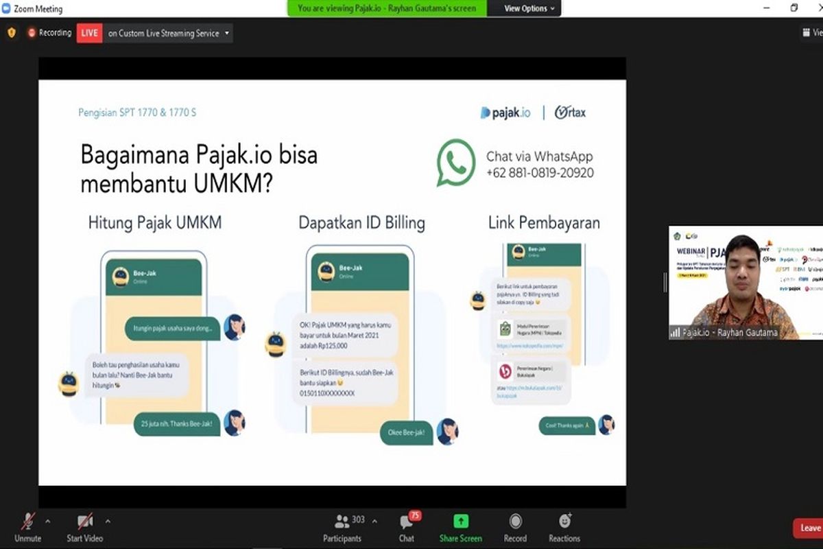 “Melalui chatbot Bee-Jak, seluruh proses tersebut dapat diselesaikan melalui chat di WhatsApp. Layaknya chat dengan teman yang tepercaya dan lebih mengerti pajak,” ujarnya.