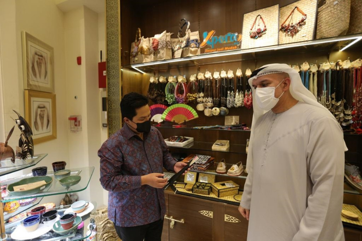 Menteri BUMN Erick Thohir bersama Abdulla Jaber Belshalat."Produk UMKM dan kualitasnya sangat bagus. Kami tentu akan mendorong pelanggan kami membeli produk Indonesia," ujar Abdulla.