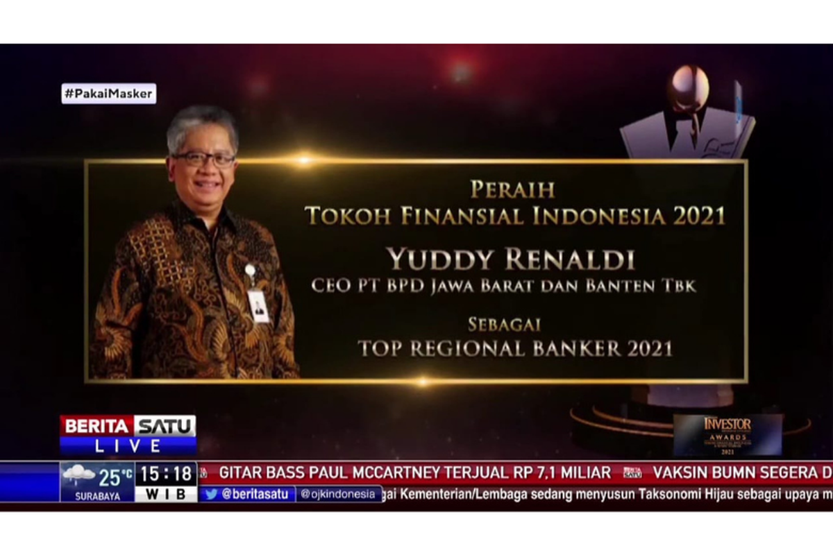 Penghargaan tersebut diserahkan oleh Direktur Berita Satu Media Holdings Primus Dorimulu dan diterima oleh Deputy Corporate Secretary Bank BJB Devi Fajar Nugraha yang mewakili Yuddy.