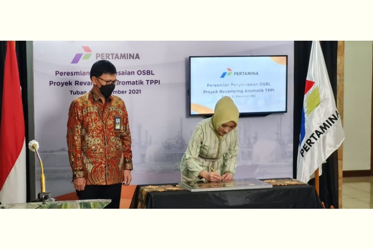 KOMPAS.com - PT Trans Pacific Petrochemical Indotama (TPPI) menyelenggarakan seremoni peresmian penyelesaian Outside Battery Limit (OSBL) Proyek Revamping Aromatik di Kilang TPPI Tuban, Jawa Timur, Senin (20/12/2021). Proyek ini diresmikan oleh Direktur Utama PT Pertamina (Persero) Nicke Widyawati.