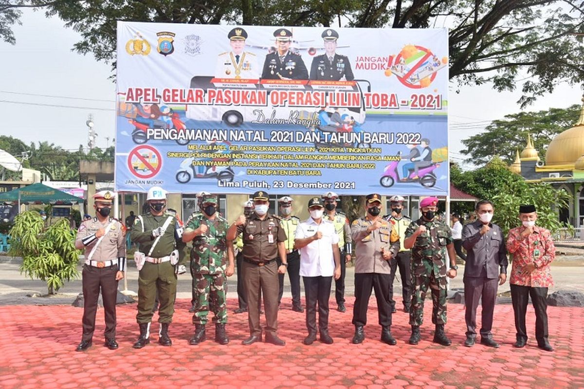KOMPAS.com - Bupati Batu Bara Ir H Zahir MAP memimpin apel Gelar Pasukan Operasi Lilin Toba 2021 dalam rangka pengamanan Hari Raya Natal dan Tahun Baru (Nataru) di halaman Markas Kepolisian Resor (Mapolres) Batu Bara, Sumatera Utara, Kamis (23/12/2021).