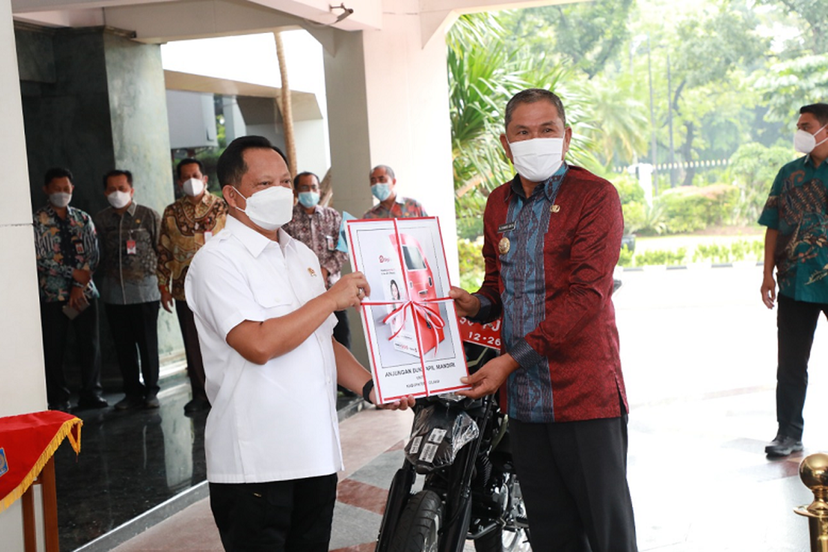 Mendagri juga memberikan satu unit motor dan satu Anjungan Dukcapil Mandiri (ADP) untuk operasional Pemkab Kolaka Tito menjelaskan bahwa informasi mengenai pencapaian vaksinasi Pemkab Kolaka didapatnya dari Direktur Jenderal (Dirjen) Bina Administrasi Kewilayahan (Adwil), Rabu (22/12/2021).