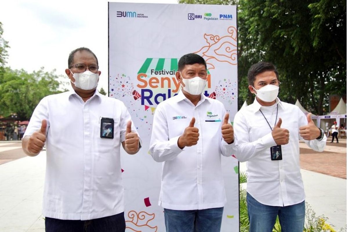KOMPAS.com – PT Permodalan Nasional Madani (PNM) bersama PT Bank Rakyat Indonesia (BRI) dan PT Pegadaian mengadakan program Festival Pasar Senyum Rakyat #BangkitSenyumBersama di Cirebon, Sabtu (26/3/2022).