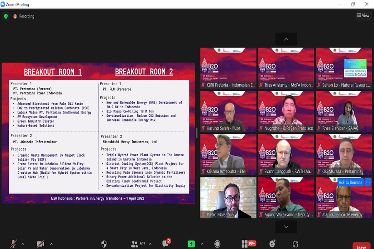 Tercatat ada sekitar 16 proyek yang ditawarkan pada forum virtual business meeting "B20 Indonesia: Partners in Energy Transition".