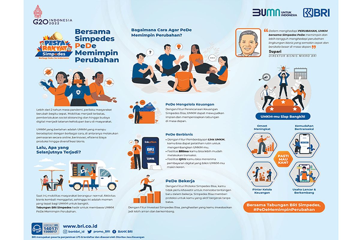 Direktur Bisnis Mikro BRI Supari mengatakan, kehadiran BRI Simpedes diharapkan dapat membantu UMKM untuk lebih percaya diri (pede) menghadapi perubahan.