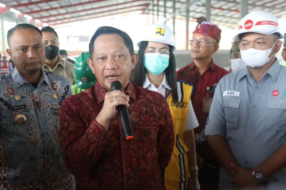 KOMPAS.com - Menteri Dalam Negeri (Mendagri) Muhammad Tito Karnavian meninjau langsung progres pembangunan Tempat Pengelolaan Sampah Terpadu (TPST) Kesiman Kertalangu, Kota Denpasar, Bali, Kamis (6/10/2022). Peninjauan ini dilakukan untuk memastikan pembangunan TPST berjalan sesuai rencana.
