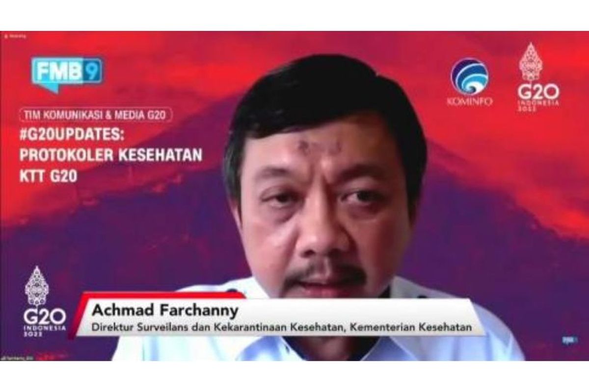 Direktur Surveilans dan Kekarantinaan Kesehatan Kemenkes Achmad Farchanny Tri Adryanto mengatakan, aturan prokes yang diterapkan pada KTT G20 berpedoman pada surat edaran (SE) Satuan Tugas (Satgas) Covid-19 yang berlaku di Indonesia, yakni SE Nomor 20 Tahun 2022 tentang Prokes pada Kegiatan Berskala Besar dalam Masa Pandemi Covid-19 dan SE Nomor 25 Tahun 2022 tentang Prokes Perjalanan Luar Negeri pada Masa Pandemi Covid-19.