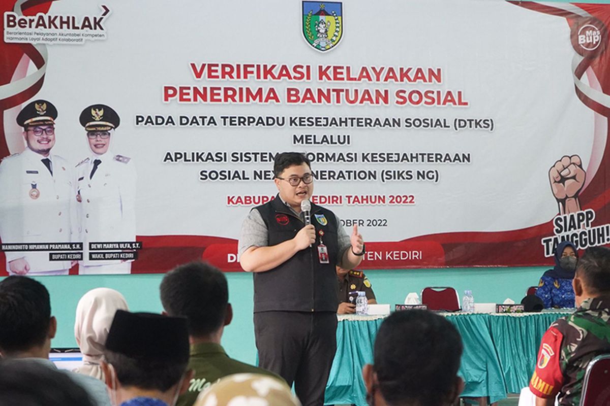 Jika pelaksanaan verifikasi dan penyaluran bantuan tidak tepat sasaran, Pemkab Kediri akan menyiapkan sanksi bagi oknum yang terlibat. Sebagai informasi, berdasarkan data Dinsos Kabupaten Kediri, sebanyak 665.593 keluarga penerima manfaat (KPM) akan melakukan verifikasi dan validasi hingga Kamis (20/10/2022) melalui Aplikasi Sistem Informasi Kesejahteraan Sosial Next Generation (SIKS NG).