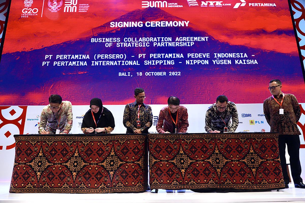 KOMPAS.com – Pertamina menandatangani dua belas perjanjian kerja sama serta memorandum of understanding (MoU) terkait transisi energi dan energi bersih di Bali Nusa Dua Convention Center (BNDCC), Nusa Dua, Bali, Selasa (18/10/2022).