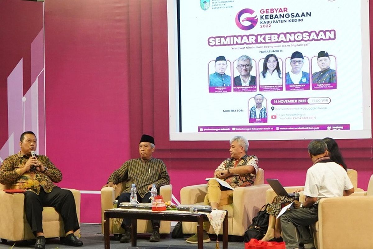 Ajakan itu disampaikan Pelaksana Tugas (Plt) Kepala Badan Kesatuan Bangsa dan Politik (Bakesbangpol) Kabupaten Kediri Mohamad Solikin. Menurutnya, di era digital, generasi milenial memiliki tantangan yang lebih berat untuk menjaga nilai kebangsaan.