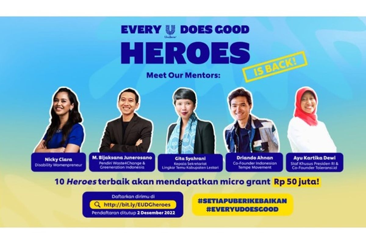Selain menghadirkan mentor-mentor berkualitas, Every U Does Good 2022 juga mengusung prinsip Heroes Grow Heroes. Dengan prinsip ini, 10 heroes terpilih pada 2021 akan ikut berkolaborasi dan memberikan inspirasi bagi peserta tahun ini.