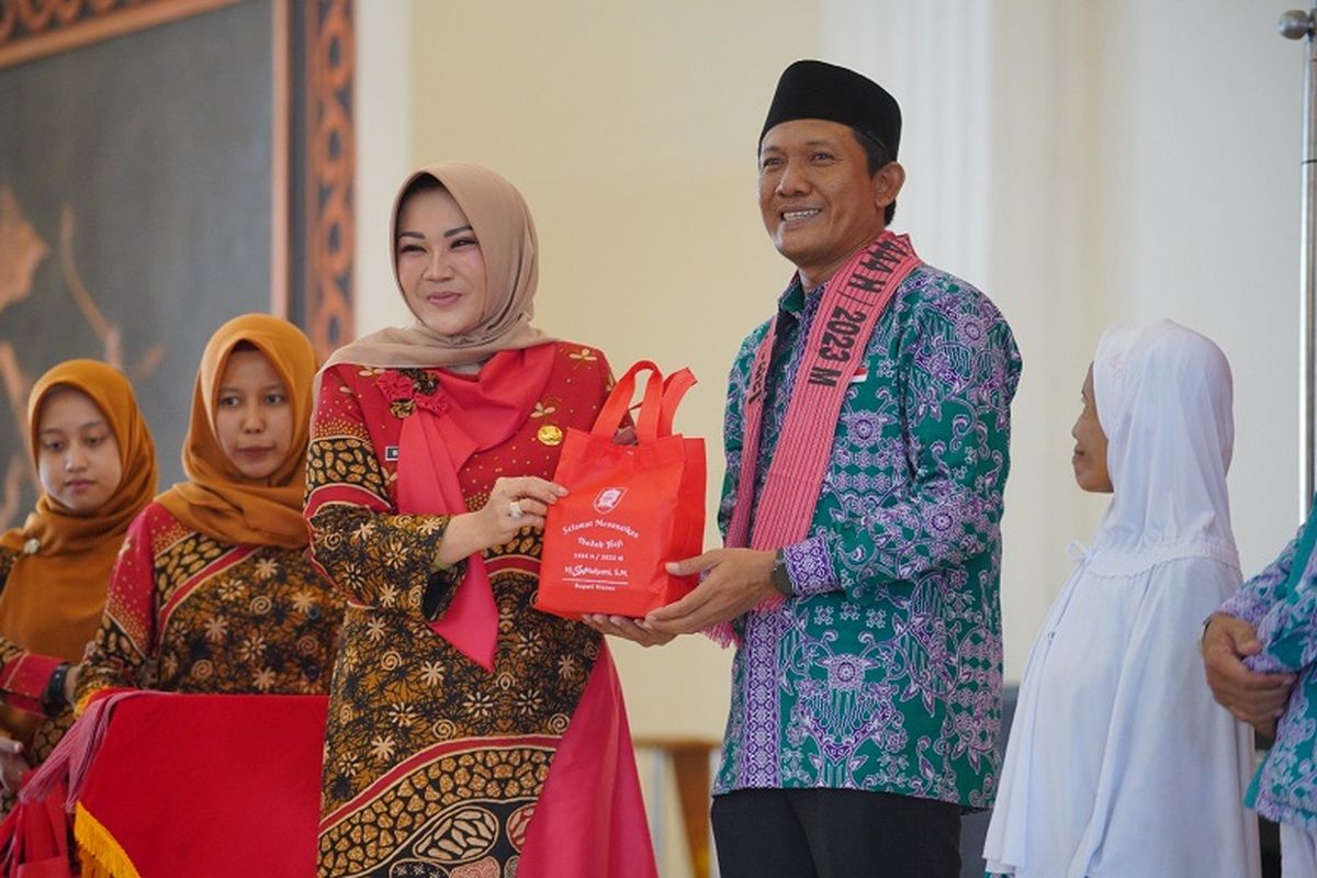 KOMPAS.com – Bupati Klaten Sri Mulyani membekali jemaah calon haji dengan makanan dan cendera mata khas Klaten. Bekal tersebut diberikan secara simbolik dalam acara Pamitan Calon Haji Kabupaten Klaten 1444 Hijriah yang digelar di Grha Bung Karno, Kabupaten Klaten, Jawa Tengah, Selasa (6/6/2023).