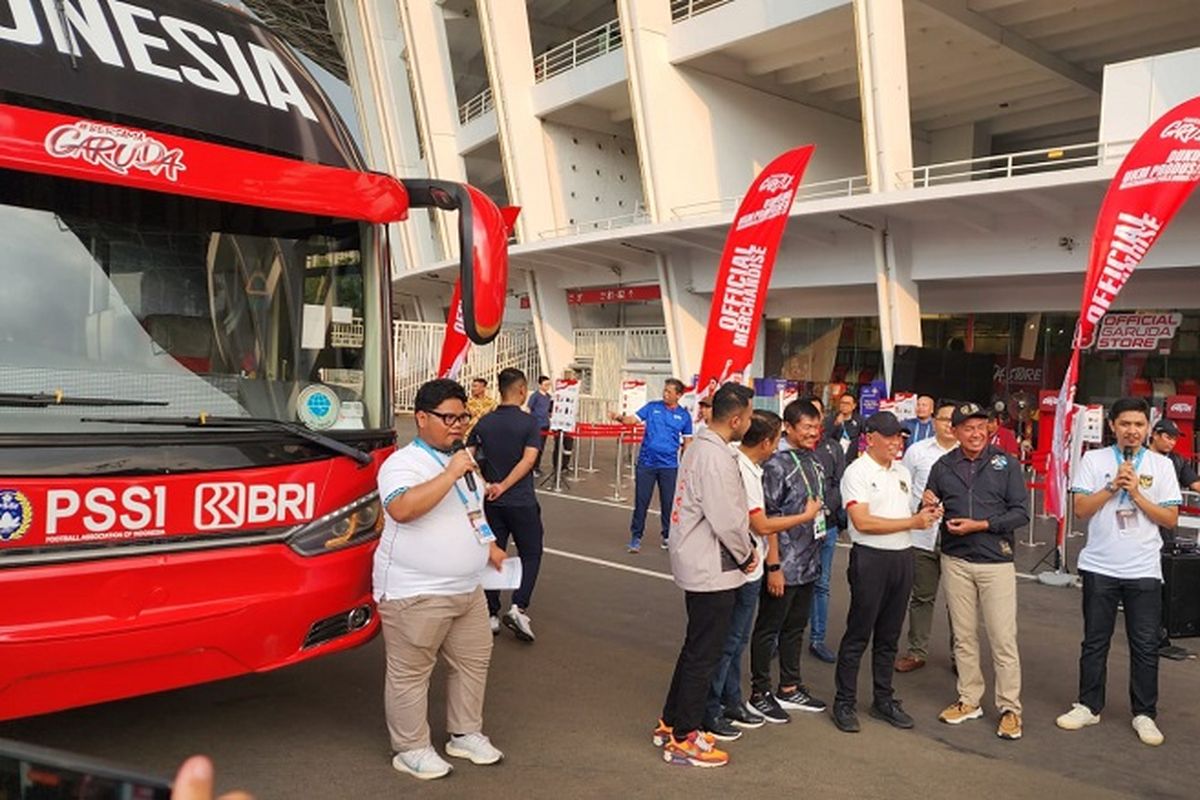 KOMPAS.com – PT Bank Rakyat Indonesia (Persero) Tbk atau BRI memberikan dukungan kepada tim nasional (timnas) sepak bola Indonesia berupa satu unit bus. Adapun penyerahan unit bus dilaksanakan di Stadion Utama Gelora Bung Karno (SUGBK), Minggu (18/6/2023).