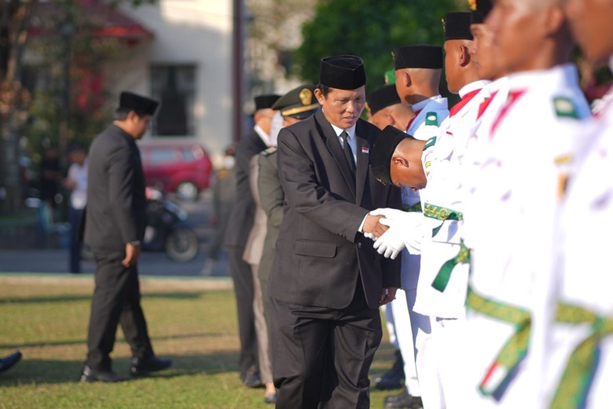 KOMPAS.com - Wakil Bupati Klaten Yoga Hardaya resmi mengkukuhkan 70 orang Pasukan Pengibar Bendera Pusaka (Paskibraka) Kabupaten Klaten 2023 di Halaman Pendopo Sekretariat Daerah Kabupaten Klaten, Jawa Tengah, Selasa (15/8/2023).