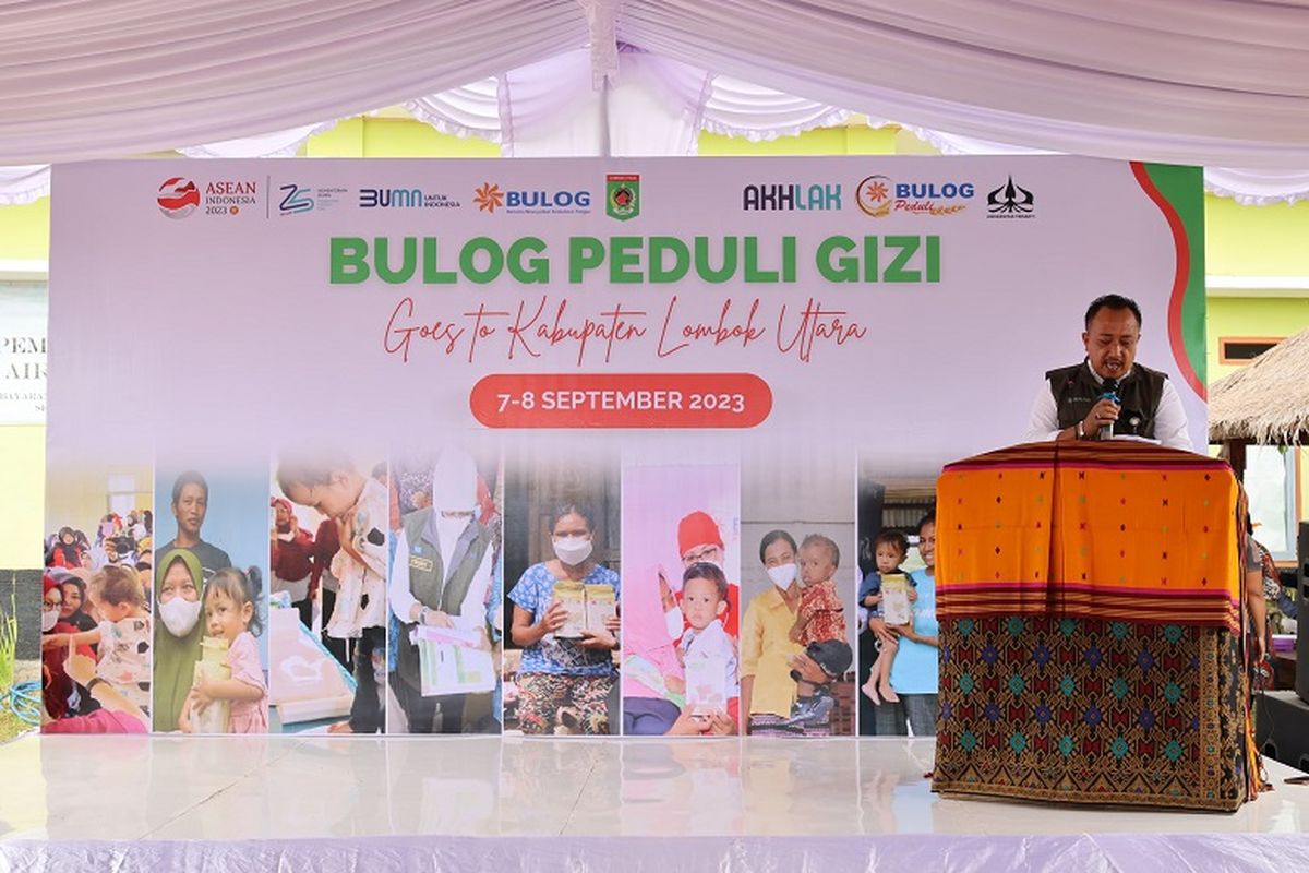 KOMPAS.com – Perusahaan Umum (Perum) Badan Urusan Logistik (Bulog) kembali menyelenggarakan kegiatan Bulog Peduli Gizi dengan menyalurkan bantuan berupa 7.650 kg beras Fortivit atau beras bervitamin untuk keluarga dengan balita di Desa Senaru, Lombok Utara, Nusa Tenggara Barat (NTB), Kamis (7/9/2023).