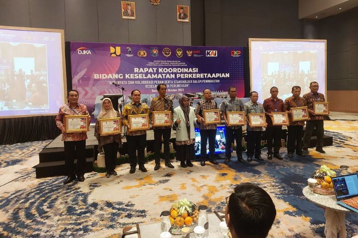 KOMPAS.com - Kementerian Perhubungan (Kemenhub) melalui Direktur Jenderal (Dirjen) Perkeretaapian memberikan penghargaan kepada Pemerintah Kota (Pemkot) Cilegon di Bandung, Jawa Barat, Kamis (26/10/2023).