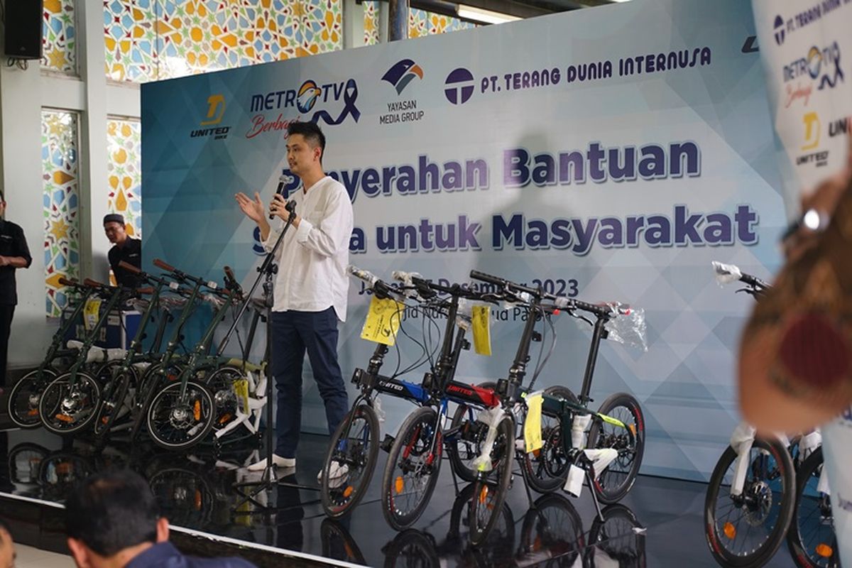 Kick-off ceremony pembagian sepeda tersebut dilakukan di area Masjid Nursiah Daud Paloh, Jakarta Barat, (Jakbar), Jumat (15/12/2023). Acara ini dihadiri oleh jajaran manajemen dari PT Terang Dunia Internusa, Metro TV, dan Yayasan Media Group.