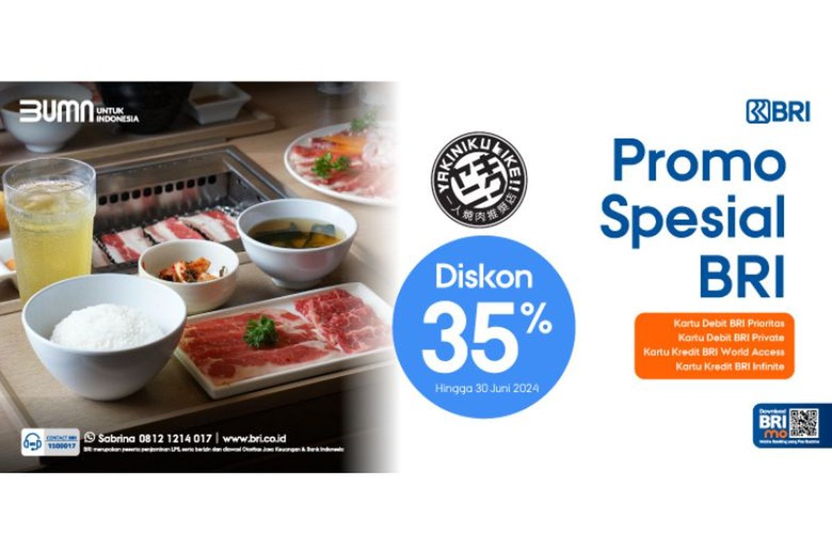 Untuk membuat perayaan semakin spesial, PT Bank Rakyat Indonesia Tbk (Persero) atau BRI menggelar promo pada mitra merchant-nya, termasuk Yakiniku Like.