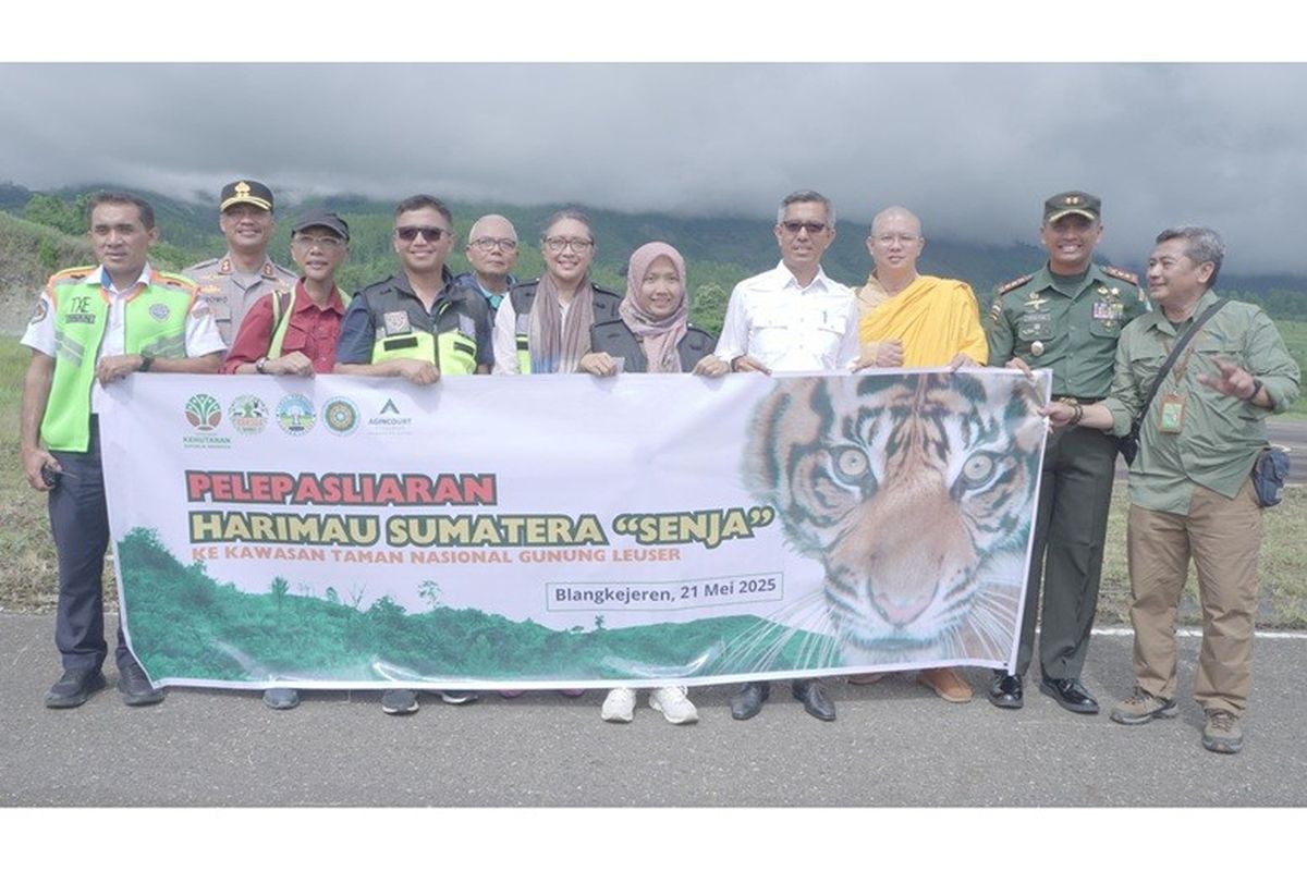 KOMPAS.com – Pengelola Tambang Emas Martabe, PT Agincourt Resources (PTAR), mendukung pelepasliaran harimau Sumatera (Panthera tigris sumatrae) bernama Senja ke habitat alaminya di Kawasan Konservasi Kedah, Taman Nasional Gunung Leuser (TNGL), Aceh, Rabu (21/5/2025).