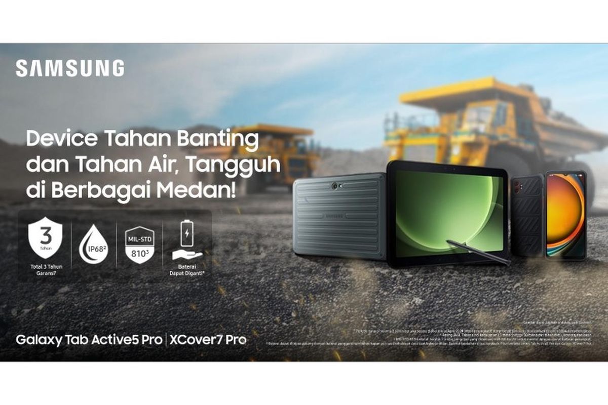 Adapun Galaxy XCover7 Pro dilengkapi dengan baterai berkapasitas 4.350 mAh, sedangkan Galaxy Tab Active5 Pro hadir dengan baterai 10.100 mAh.