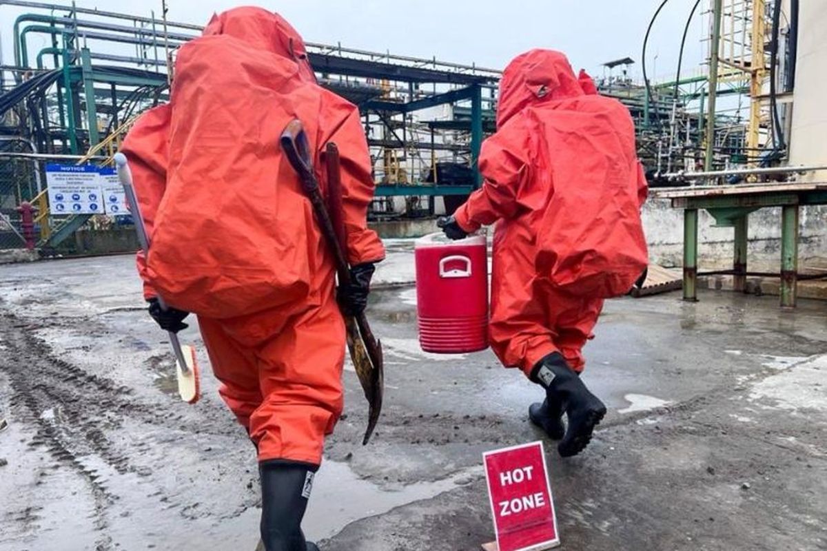 Tim penanganan tumpahan kemudian melakukan isolasi area serta proses dekontaminasi sesuai prosedur operasional standar (SOP) dan pedoman teknis yang berlaku di industri pertambangan nasional.