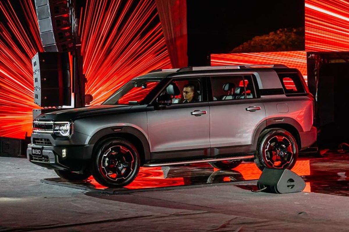 Secara visual, BJ30 HEV tampil dominan dengan dimensi besar dan postur SUV sejati. Gril lima lubang khas BAIC, DRL modern, floating hardtop, serta detail lampu fender menegaskan karakter off-road yang kuat dan berkelas.