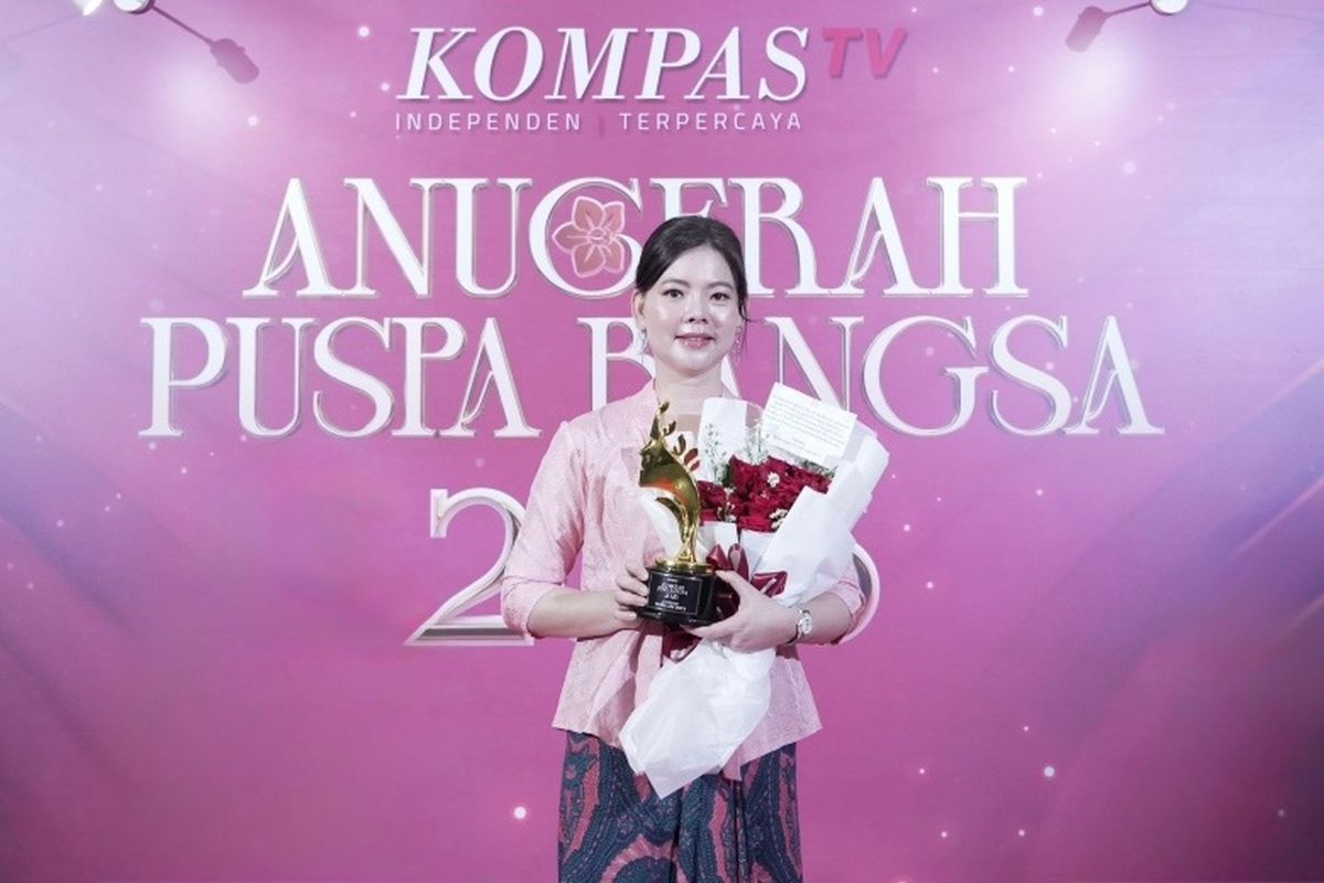 Managing Director Khong Guan Group Kataline Darmono (kiri) meraih penghargaan Puspa Adi Daya dalam ajang Anugerah Puspa Bangsa 2026 yang digelar KompasTV. Anugerah Puspa Bangsa 2026 merupakan ajang penghargaan yang dihadirkan KompasTV untuk mengapresiasi perempuan-perempuan inspiratif yang telah memberikan kontribusi nyata bagi masyarakat dan bangsa.