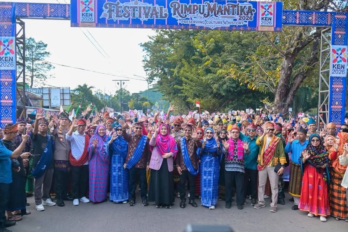 KOMPAS.com – Festival Rimpu Mantika yang diselenggarakan di Kota Bima, Nusa Tenggara Barat (NTB), Sabtu (25/4/2026) sukses menyita perhatian masyarakat. Hal ini terlihat dari membeludaknya jumlah peserta yang ikut memeriahkan rangkaian pawai rimpu.
